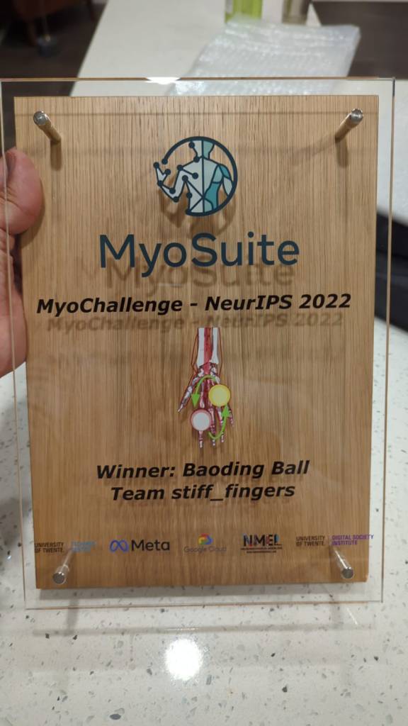 The year was 2022, and the challenge was as ambitious as it was fascinating: teach a physiologically realistic, muscle-based model of a human hand to move and manipulate objects with the dexterity of a real one. We’re talking about tasks that require contact, pressure, and fine motor control — things like rotating a ball in your hand, gripping, adjusting — the kind of subtle movements we barely think about but which are incredibly hard to recreate in machines. Nisheet joined forces with 2 other PhD students and 2 professors, forming a small but determined team.